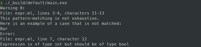 (En réalité nous arriverons à un résultat légèrement différent car l’auteur de ce tutoriel n’aime pas tous les choix faits pour afficher les messages d’erreur en OCaml mais les différences n’auront pas de grande importance)