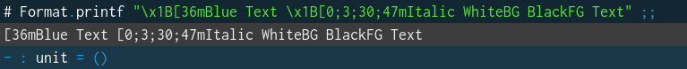 %(syntaxe héritée du C). Ils sont remplacés à l’exécution par un des paramètres fournis après la chaîne de formattage à la fonction et servent à indiquer de quel type doit être la valeur qui sera affichée (ainsi que d’autres informations dont les détails peuvent être trouvés dans la documentation du module Printf.printf "Test: %d"attend un entier signé et afficheraTest: <d>avec<d>remplacé par l’entier fourni.